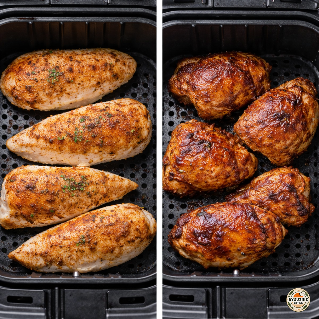 Air fryer chicken breast vs thighs nutrition (what matters most)