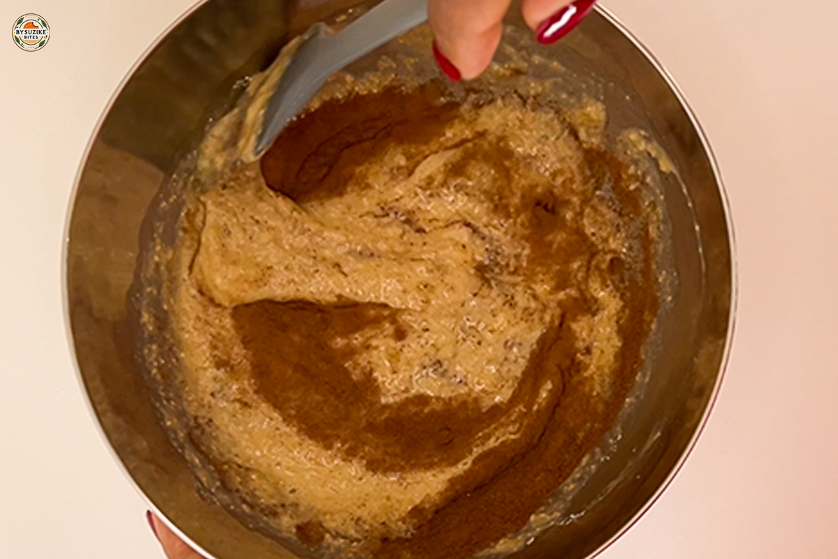 - Add the eggs: Crack in the eggs and mix well.
