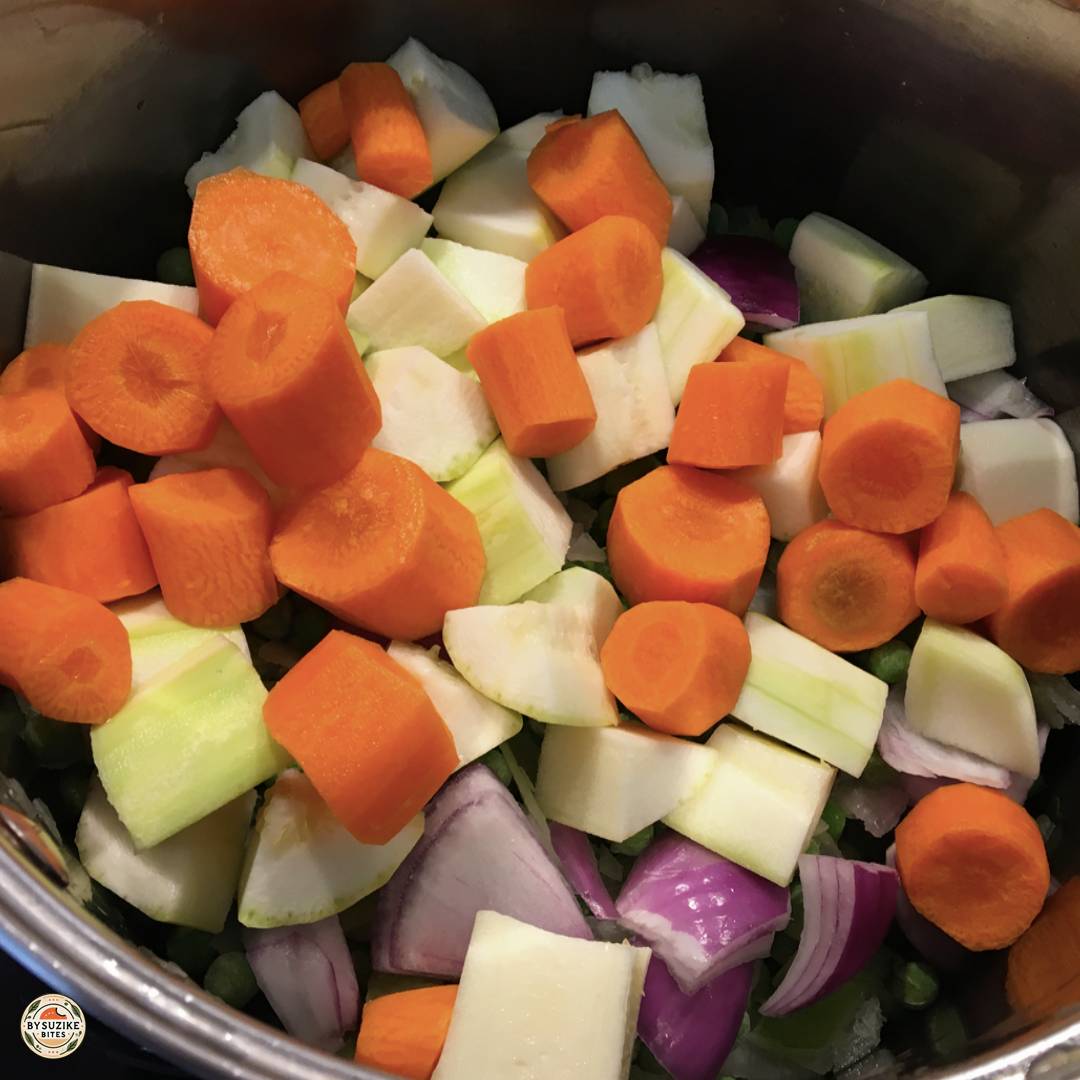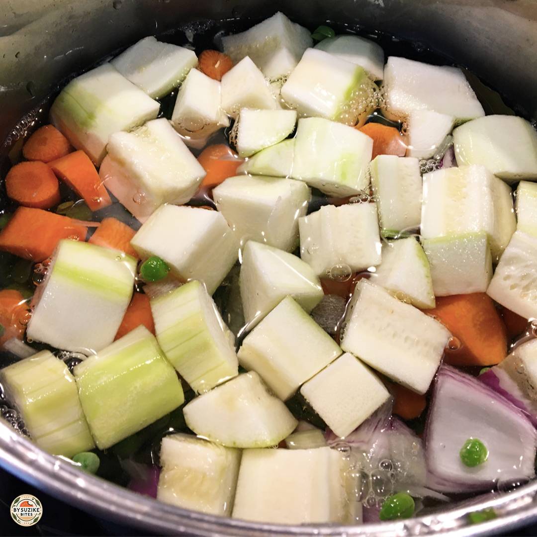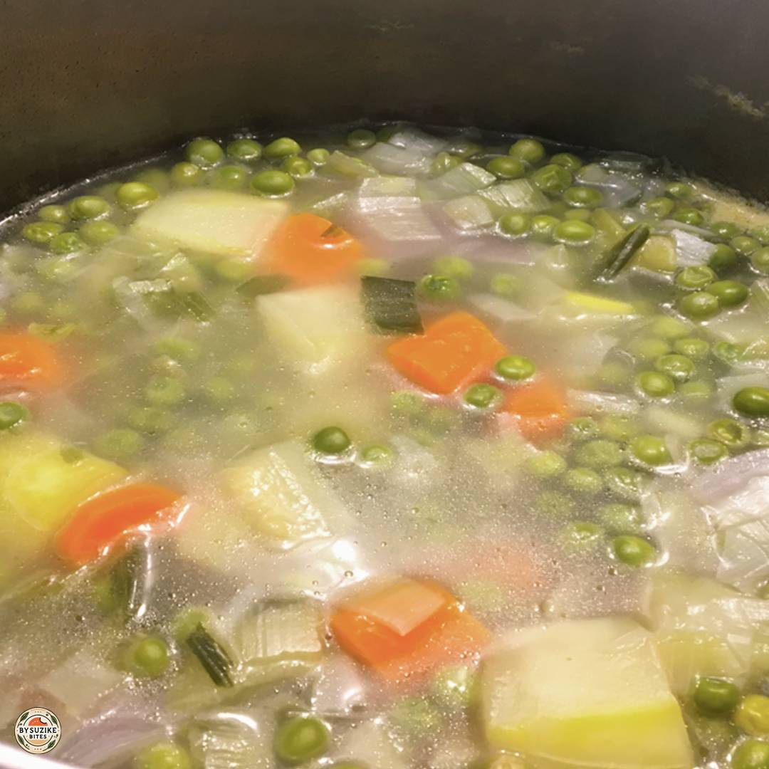 - If you want the soup thicker, keep the water level at the height of the vegetables, then adjust after blending.